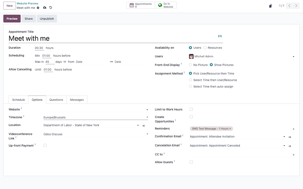 Set minimal lead times, padding between appointments, time zones, and cancellation policies.