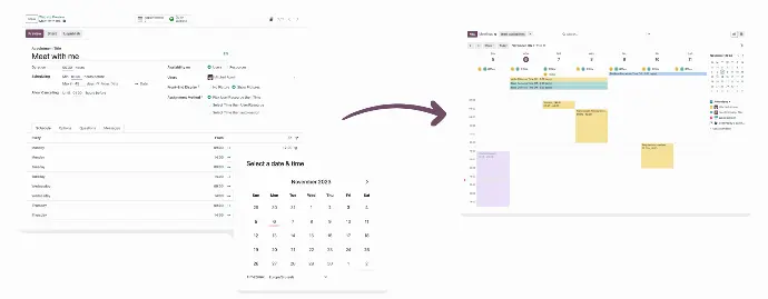 Connect to Odoo, Google, or Outlook calendars. Real-time sync prevents scheduling conflicts.