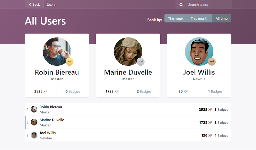 Users earn or lose karma through posting, voting, answering, accepting, flagging content. Tiers unlock privileges, which are configurable per forum. Ranks and badges can be defined manually or awarded based on karma or completed challenges