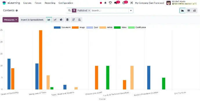 Track performance across multiple dimensions (views, reviews, revenue, quiz results) for better course management.