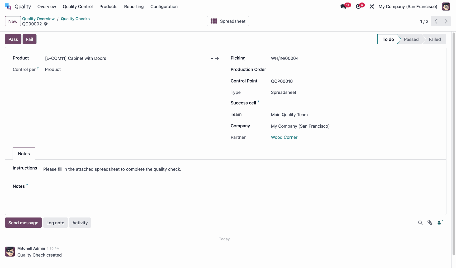 Define control points, launch quality checks, and manage non-conformance cases directly within the workflow.