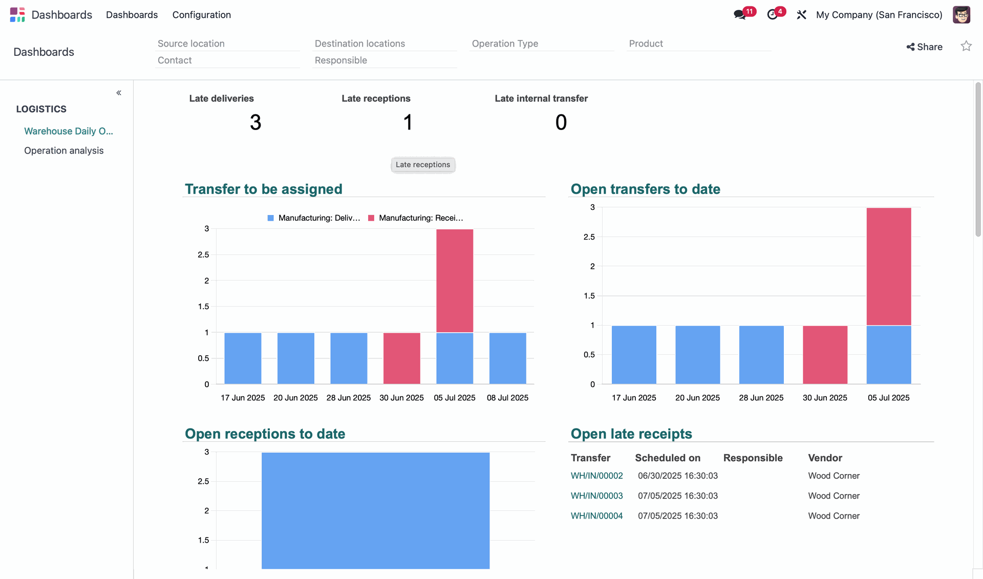Monitor work orders, material movements, and timelines as they happen.
