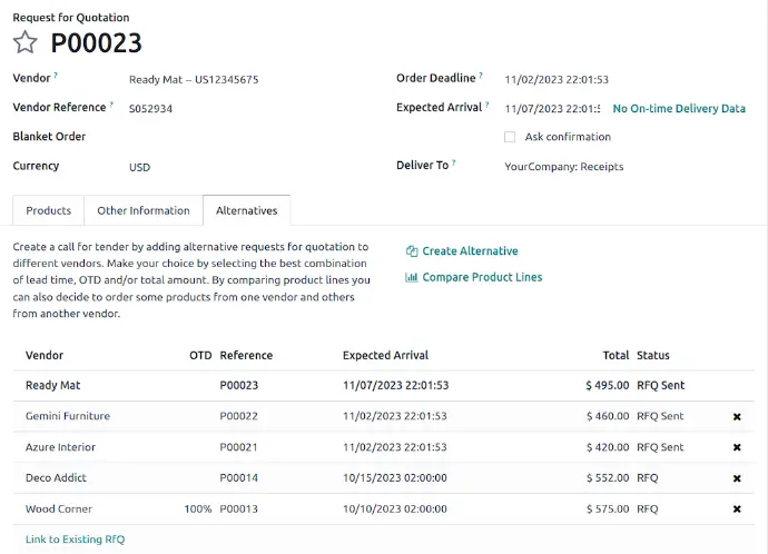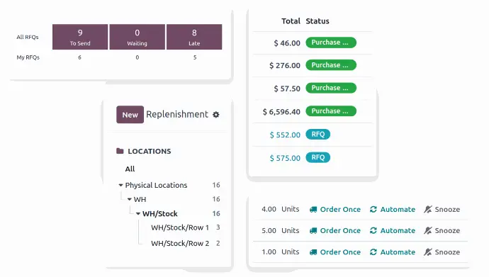 Automate your sourcing—from RFQs to supplier bills—while synchronizing with stock levels, multiple companies, and accounting.