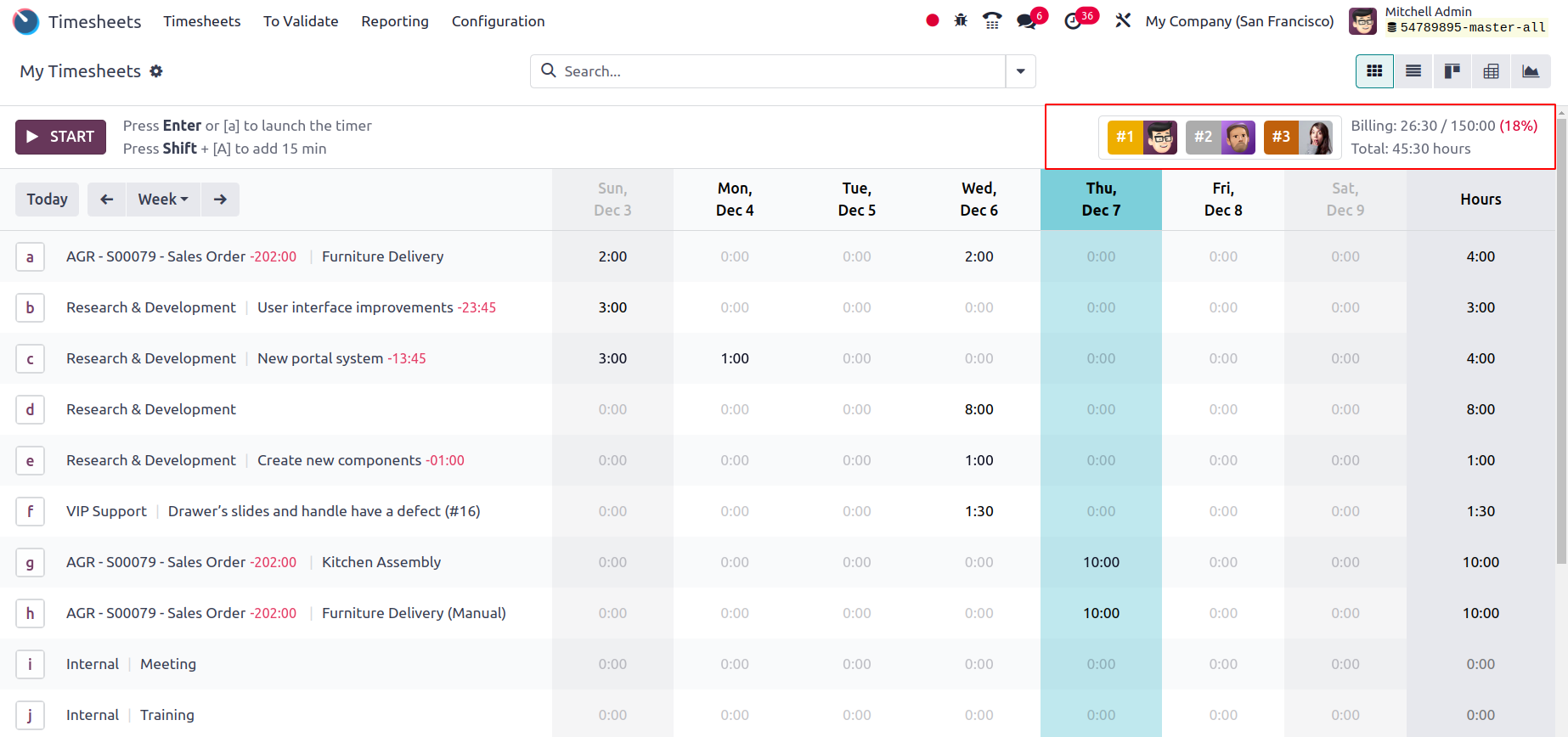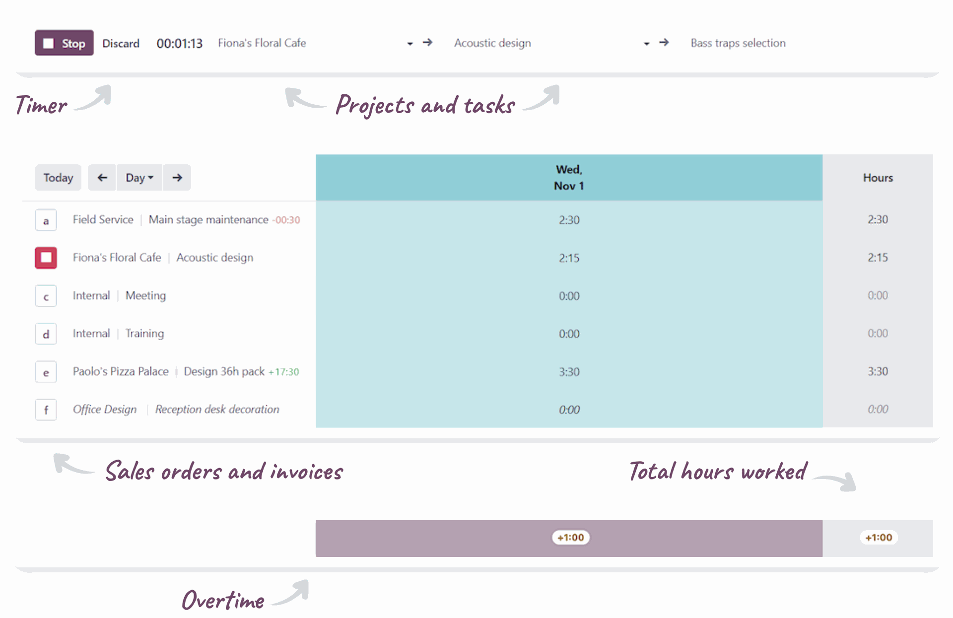 Timesheets connect seamlessly with Projects, HR, Payroll, and Invoicing.