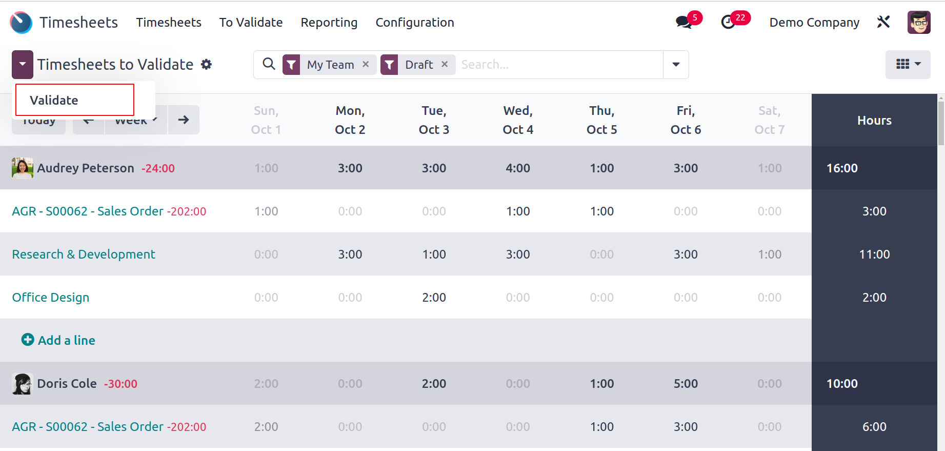 Identify overtime, missing logs, and allocated vs actual hours at a glance.